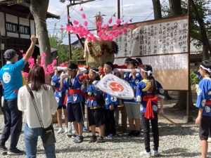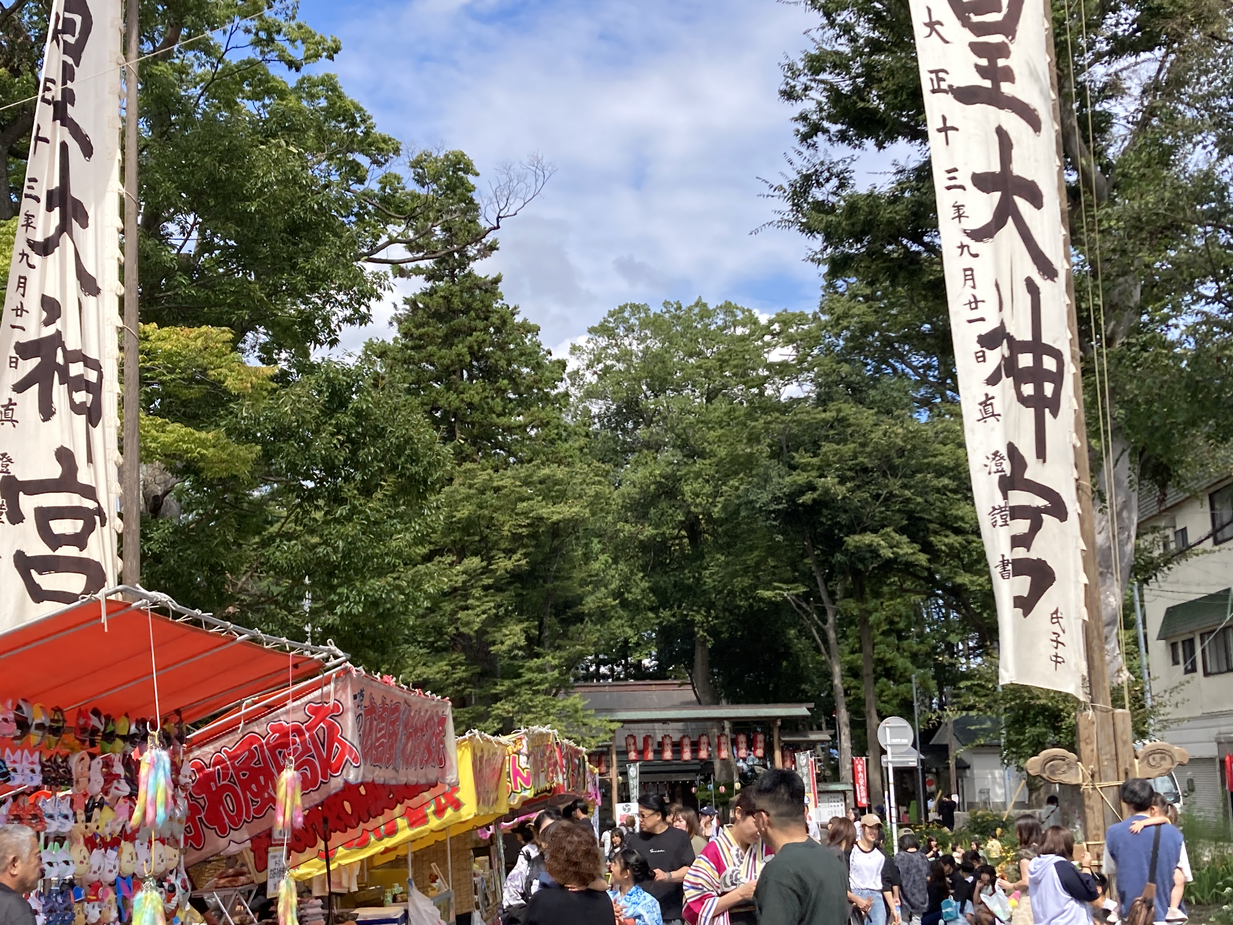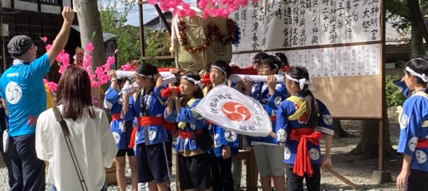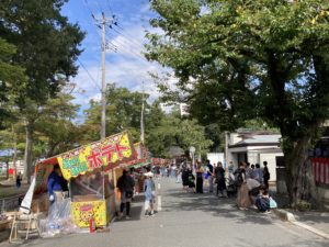 2025年9月24日blogyoko 元気な声 通行止めの道路には子供が喜びそうなお店が いっぱいです。 私たちはまずはお参り。 間も無く子供神輿が始まるようです。 声かけと神輿のあげ方を指導されています。 最初は小さな声でしたが、数回やると 揃って元気な声で〜す。