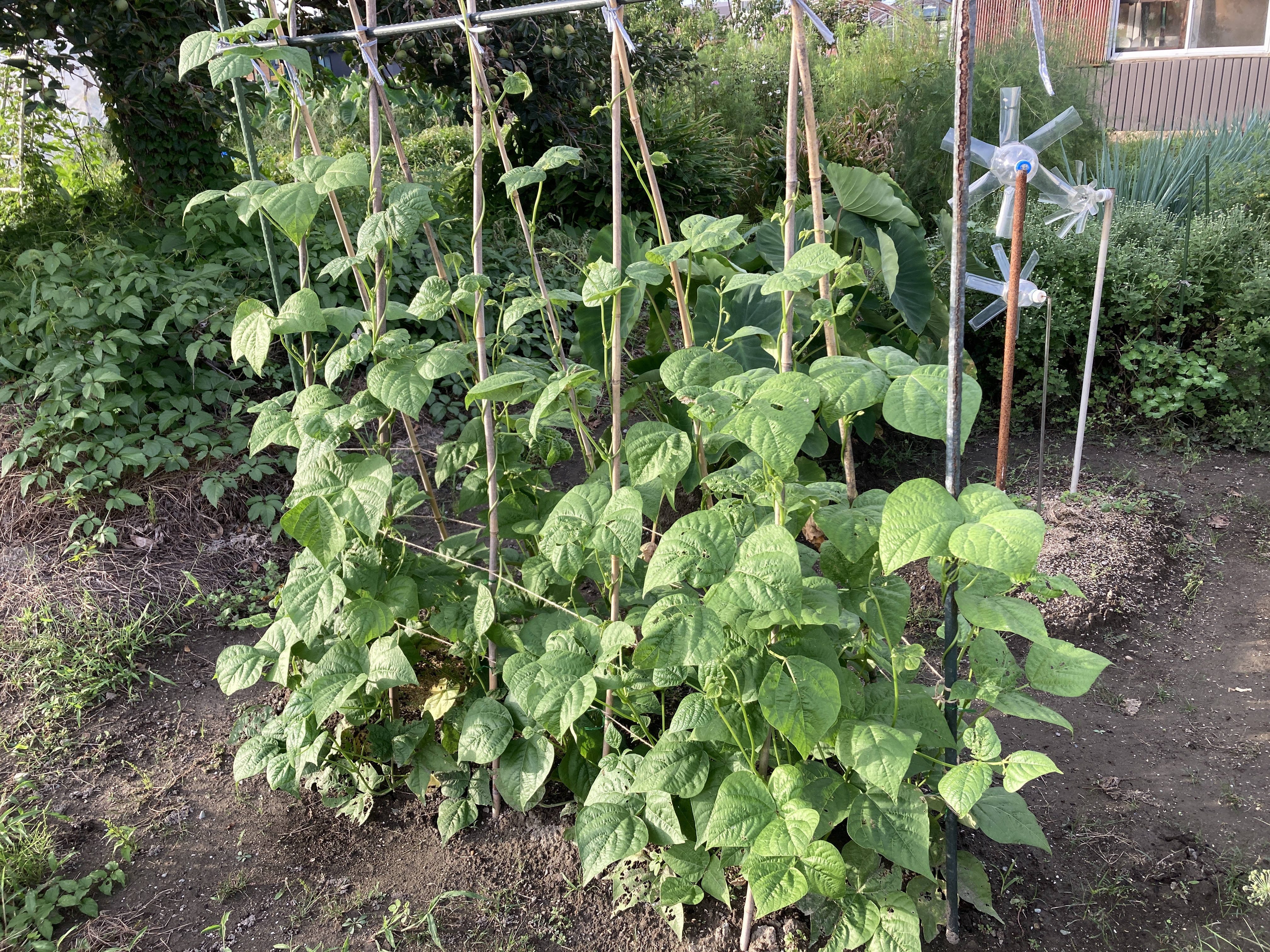 2025年9月20日blogyoko 2回目の 2回目のインゲンがずいぶん伸びてきました。 ただ、雨続きで花が咲きません。 1回目は暑くて花が咲いても実がつかず、 今回はダメかもです。 あとは少しの野菜の収穫で〜す。