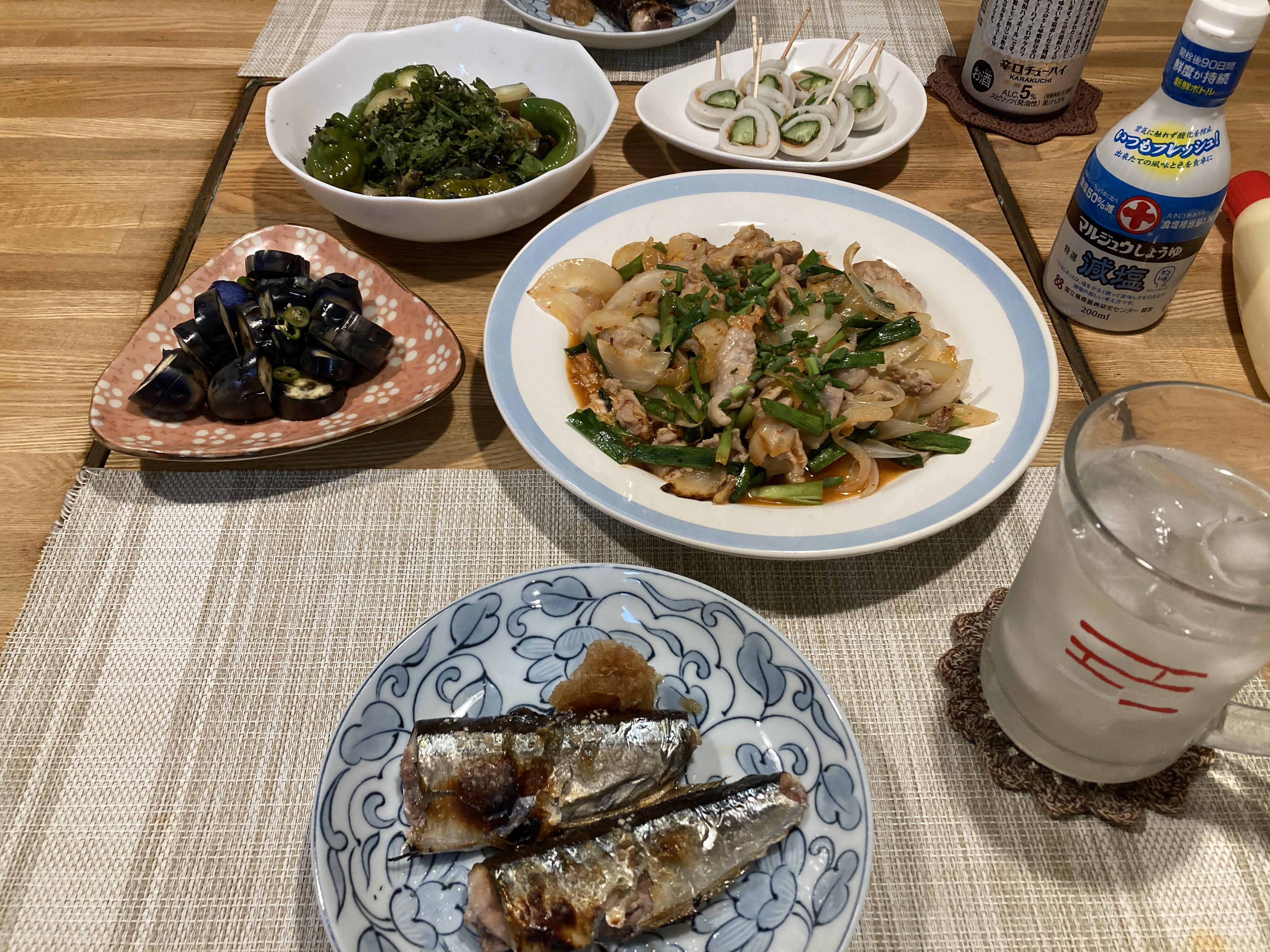 2025年9月20日blogyoko 手が出ない サンマと豚キムチ&茄子と万願寺の煮浸しの 夕食です。 相棒は豚キムチをせっせっと食べ、私は 煮浸しを茄子と万願寺が続きすぎて飽きて しまったようです。 相棒どうしても手が出ないようで〜す。