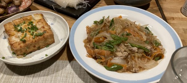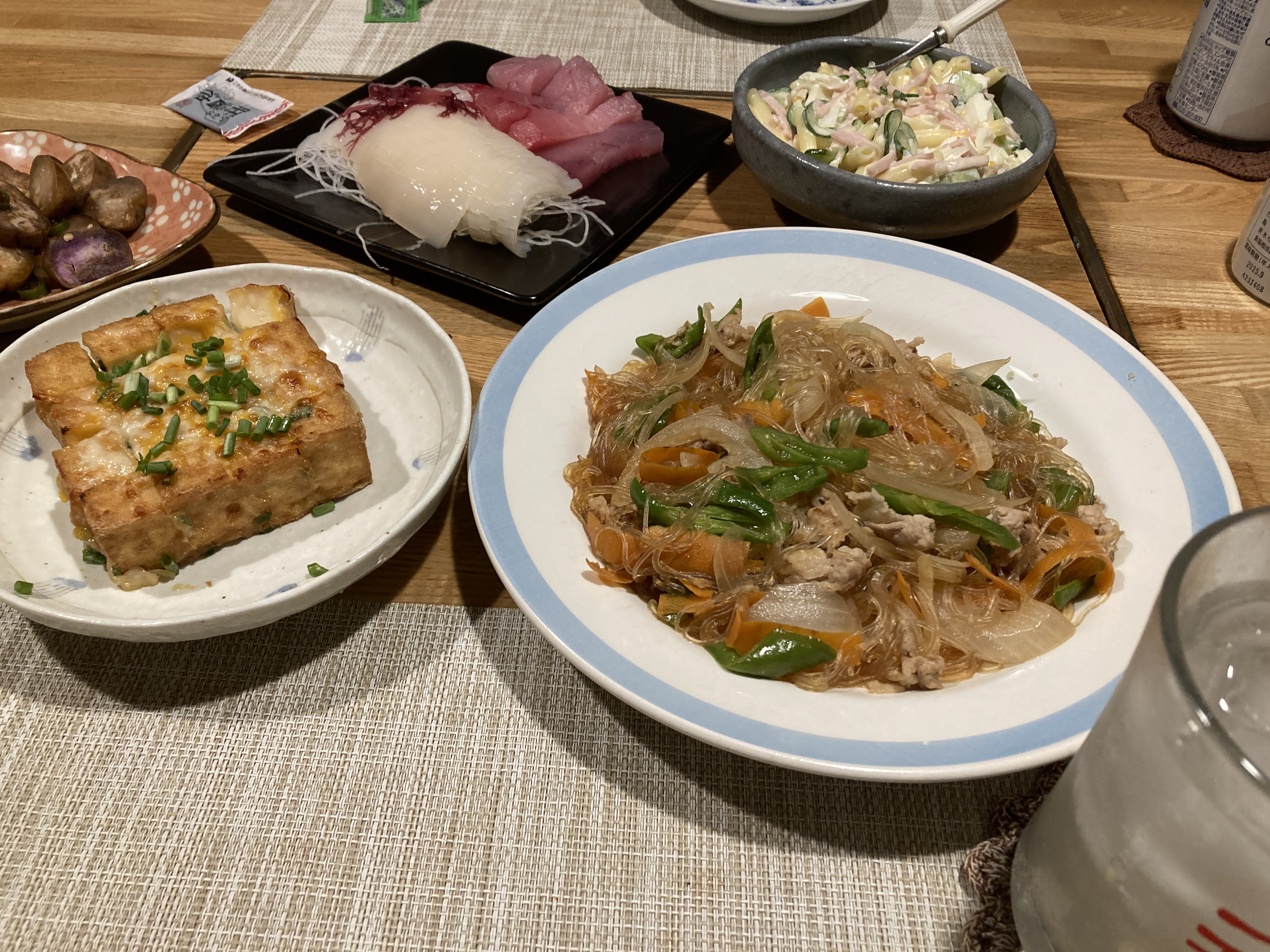 2025年9月25日blogyoko 相棒が 夕食はスーパーで安かったお刺身とチャプチェ &厚揚げに甘味噌とチーズを入れてチーン。 酒のつまみには甘味噌でなく辛味噌の方が 良かったかもです。 相棒が醤油を垂らしていま〜す。