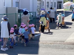 2025年10月1日blogyoko ほんわか 賑やかな声が聞こえてきたので外を 見たら、紐のようなものに両側から 行儀良く手を繋ぎ、保育園児たちが 散歩から帰ってきたようです。 朝から心がほんわかしま〜す。