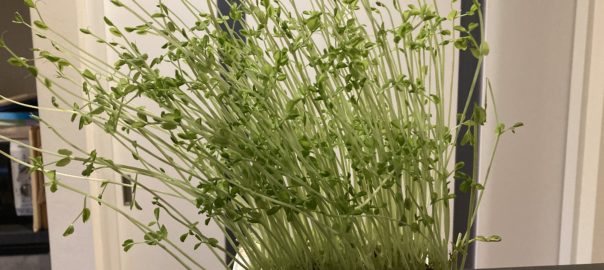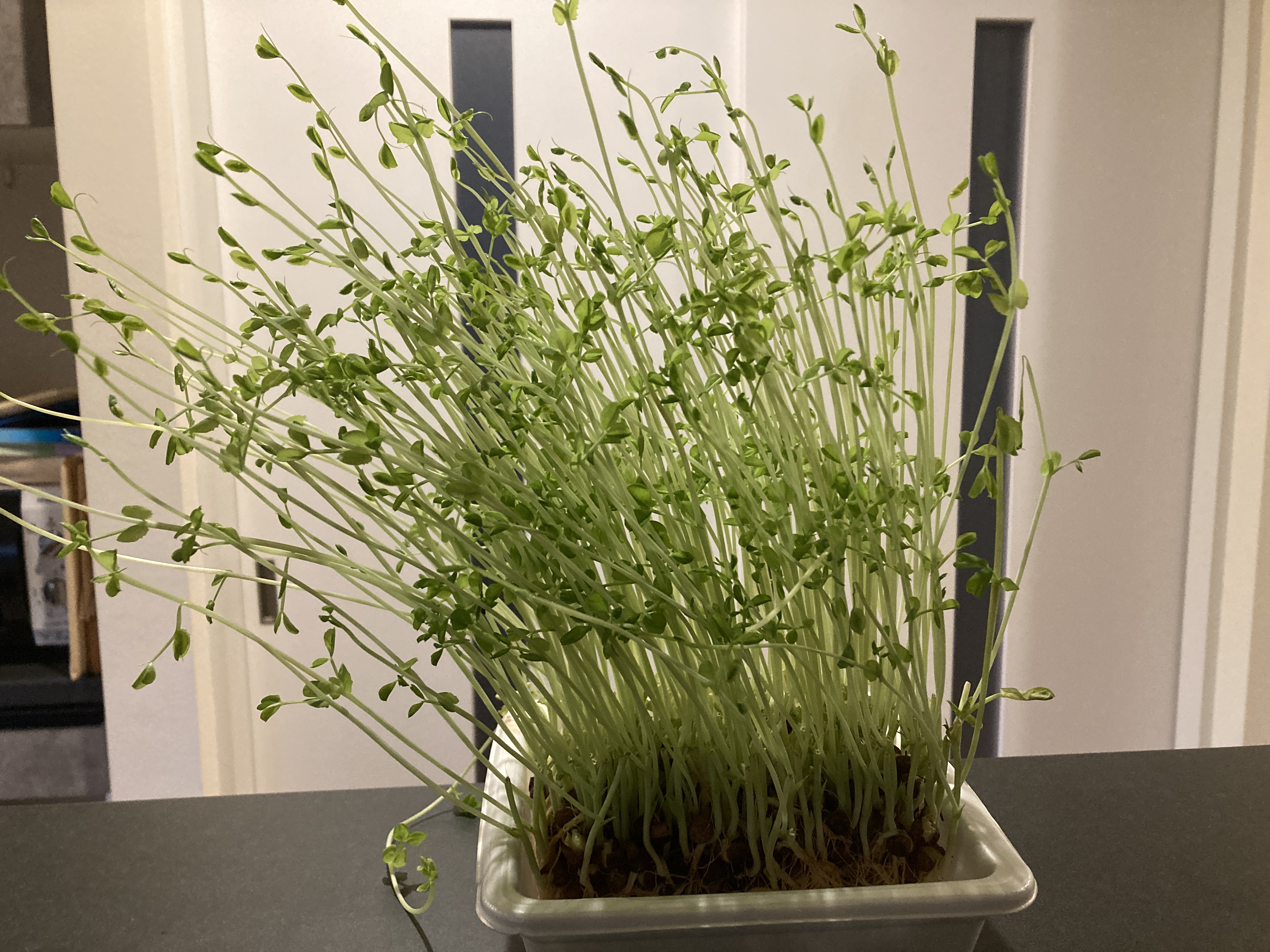 豆苗がとんでもなく伸びています。