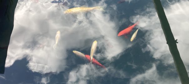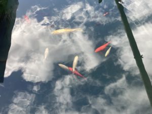 池の魚を眺めたり、お茶を飲んだりして