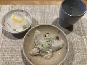 二人ともお疲れ気味なので相棒には生牡蠣と