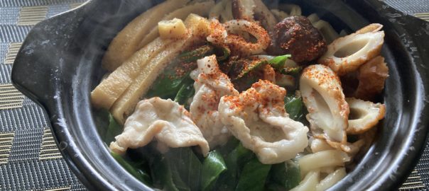 お昼は鍋焼きうどん。