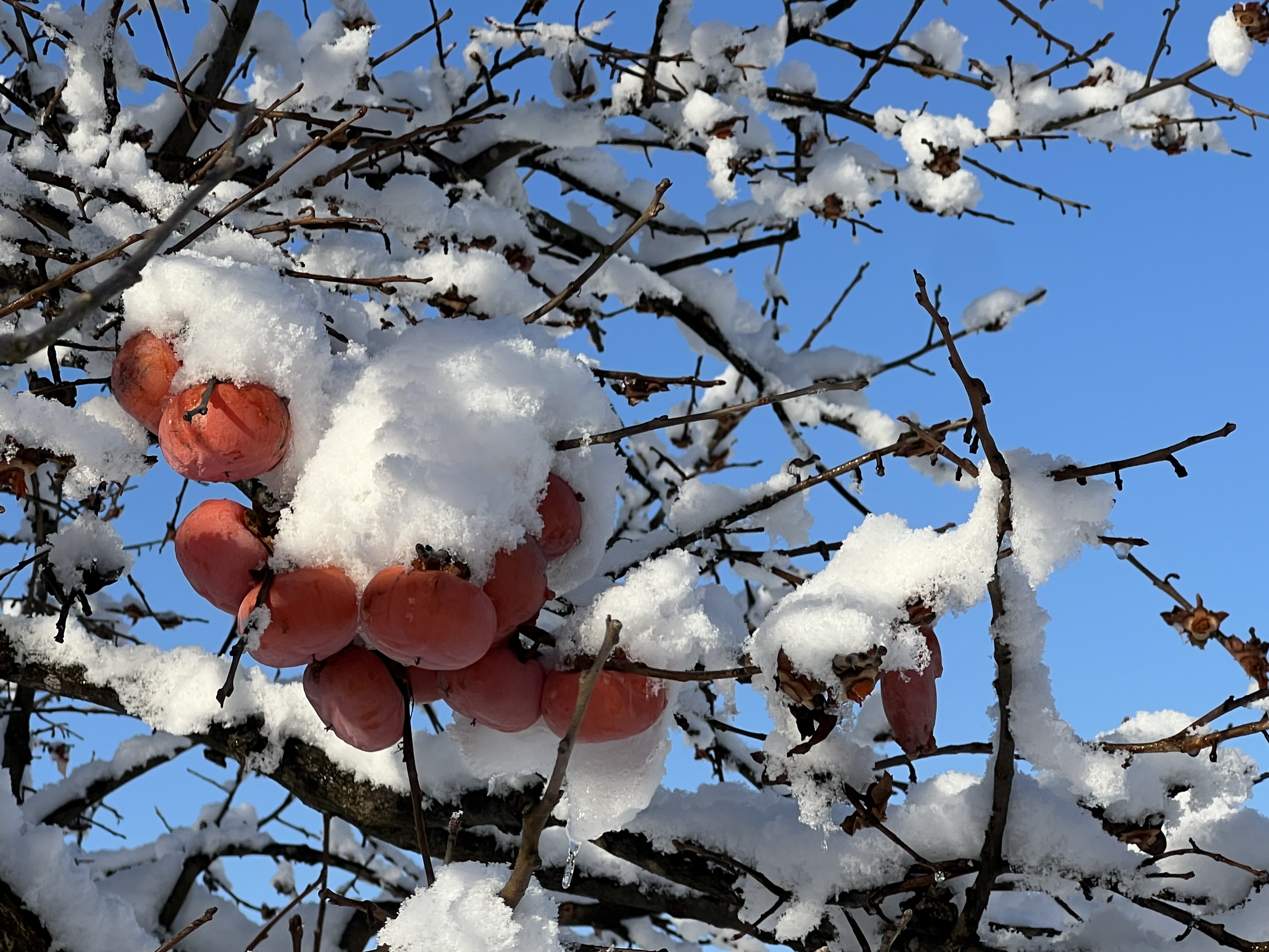 2025年12月28日blogyoko 青空の下に 今日はキッチンやリビングの照明や棚を 拭き掃除。 半日がかりでやっています。 その間に相棒が玄関にしめ飾りや神棚に榊を 飾ったりと年始に向けて動いています。 早めに終わった相棒が畑に大根掘りに。 青空の下に雪が積もった柿が眩しいで〜す。