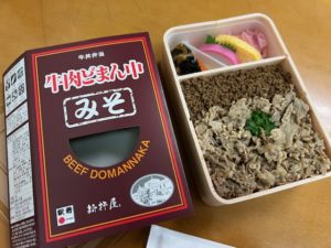 2025年12月27日blogyoko 男性たちは 事務所のお昼は牛肉重の予定が全員分 揃わずに、牛肉どまん中(味噌味)と 半分づつ。 夏季休暇と年末年始休暇の前日のお昼は 毎回、外食でしたが、今は少しでも早く 帰れるようにお弁当になっています。 それも私が辞めてからは肉やうなぎ等に。 私がいたら、全体購入していないから 男性たちは嬉しいかもで〜す。