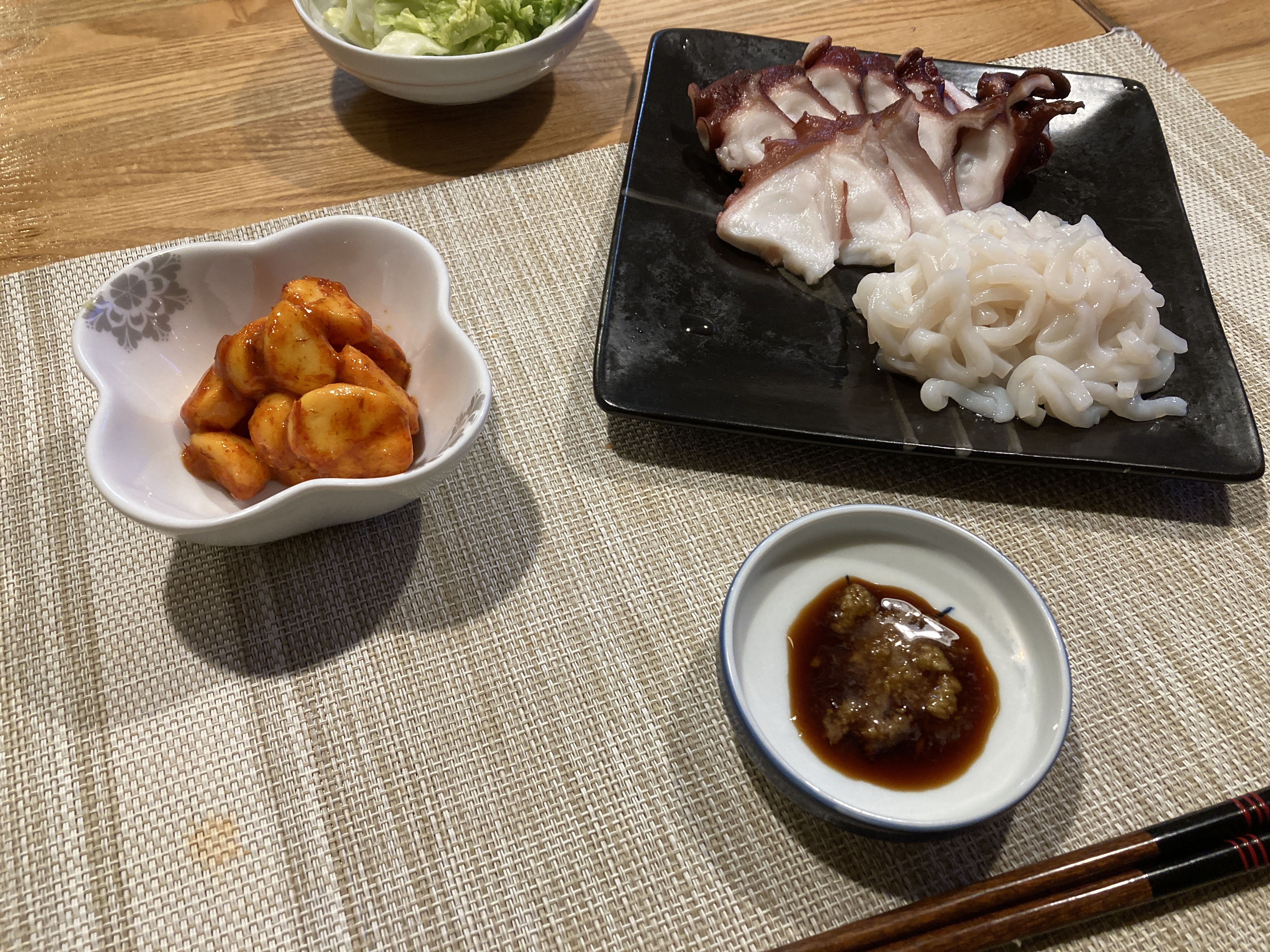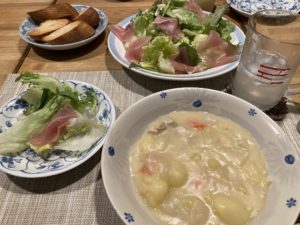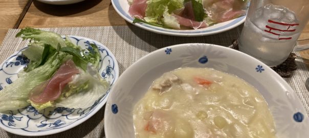 2026年1月12日blogyoko アンバランス 一日中家にいるので早めに夕食です。 相棒にはタコとイカのお刺身を出して、 その間に自分が食べるものを用意。 シチューと生野菜&フランスパン。 我が家の夕食メニューはアンバランスで〜す。