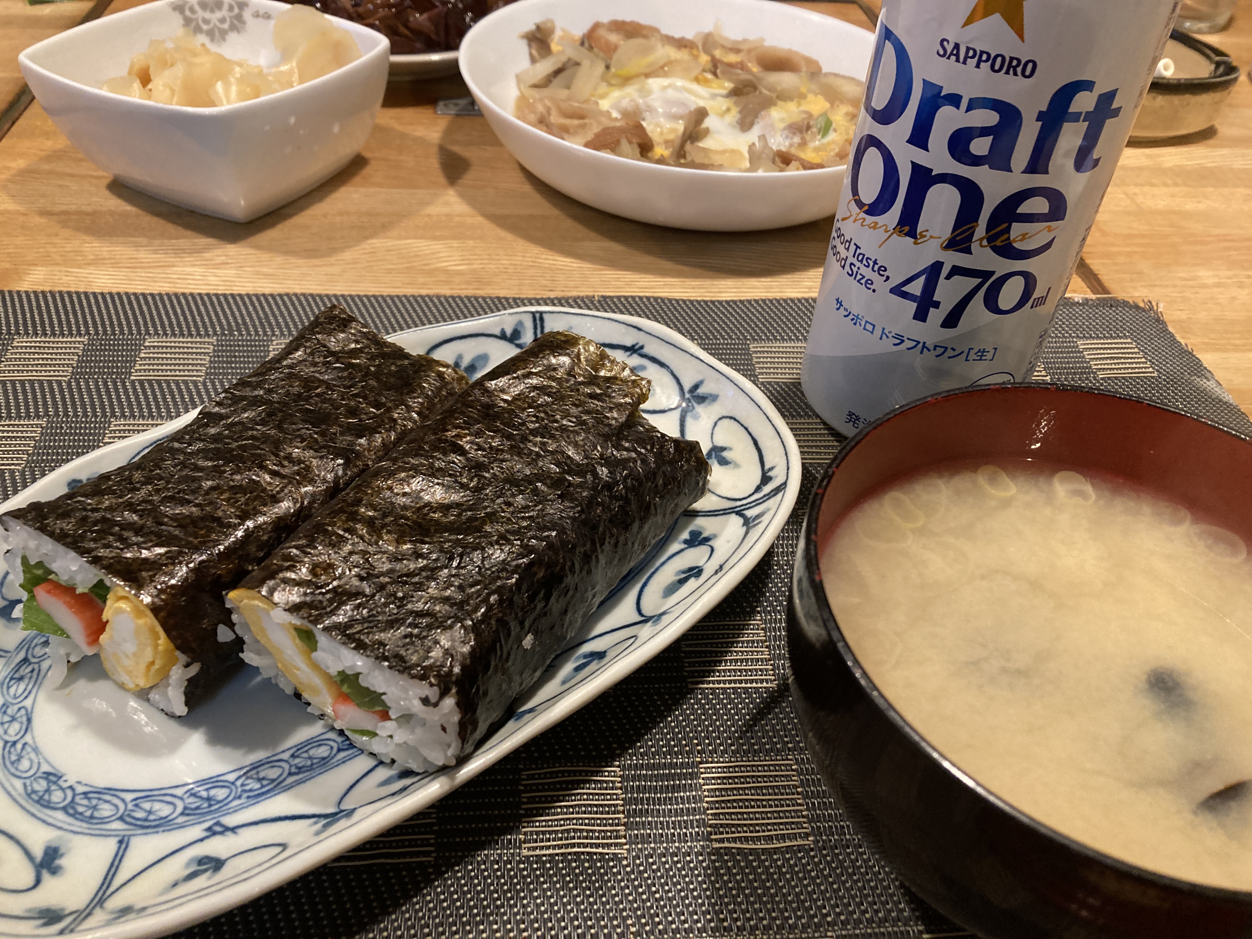 2026年2月4日blogyoko 恵方巻 私の恵方巻はきゅうり、紫蘇、卵、カニカマ。 相棒はマグロのみの恵方巻。 1本まるまる食べられないので半分に。 それでも口いっぱいになって、蜆汁で 流し込みで〜す。