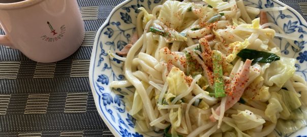 2026年2月5日blogyoko 家でリモート会議 買い物に出かけて、1時近くに戻ったら 相棒が家でリモート会議です。 事務所にお客様がいて、どこもスペースが なかったようです。 お腹が空いたので私は手軽な焼うどん。 これから市役所に行く用事があるからと 相棒、市役所でお昼だそうで〜す。