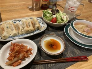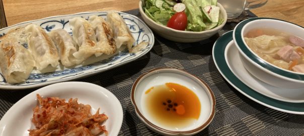 で、私も餃子とキムチ&野菜の端材で作った