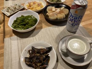 2026年2月13日blogyoko 冷凍庫の消費 夕食は冷凍庫の消費。 冷凍枝豆がたくさんあるのでスープに 冷凍のじゃがいもをジャーマンポテトに 大根とネギでステーキに。 で、一番美味しいかったのは茎わかめ で〜す。