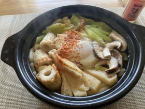 ちょっと早いですが鍋焼きうどんでお昼。