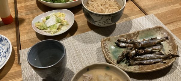2026年2月22日blogyoko 手抜き 相棒がまたもつ煮込みを作りました。 夕食はもつ煮込みとししゃも。 私はお昼のかき揚げでまだお腹が空いて ないので生野菜と冷凍ピラフを少しだけ。 手抜き夕食で〜す。
