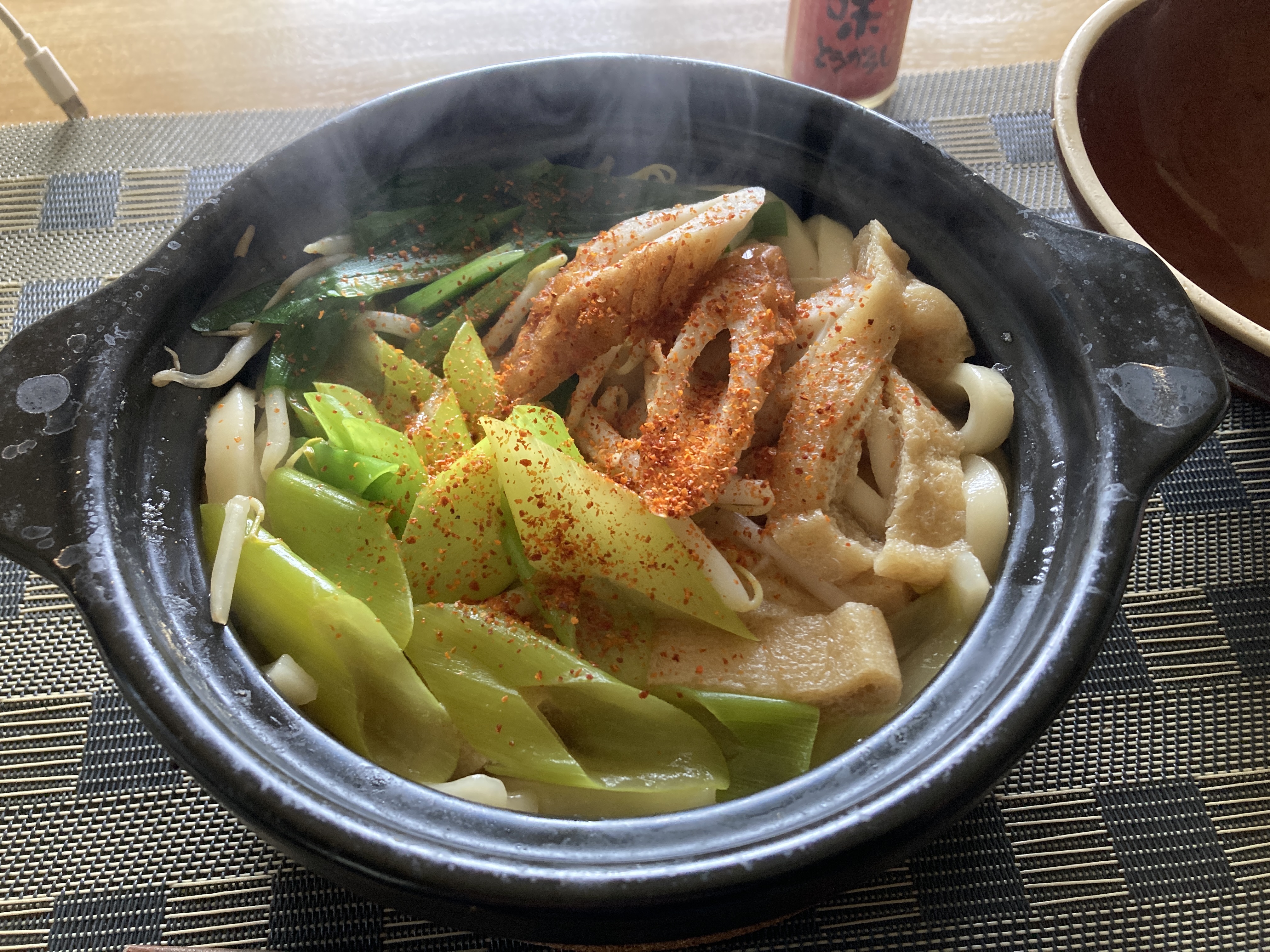 お昼は鍋焼きうどん。