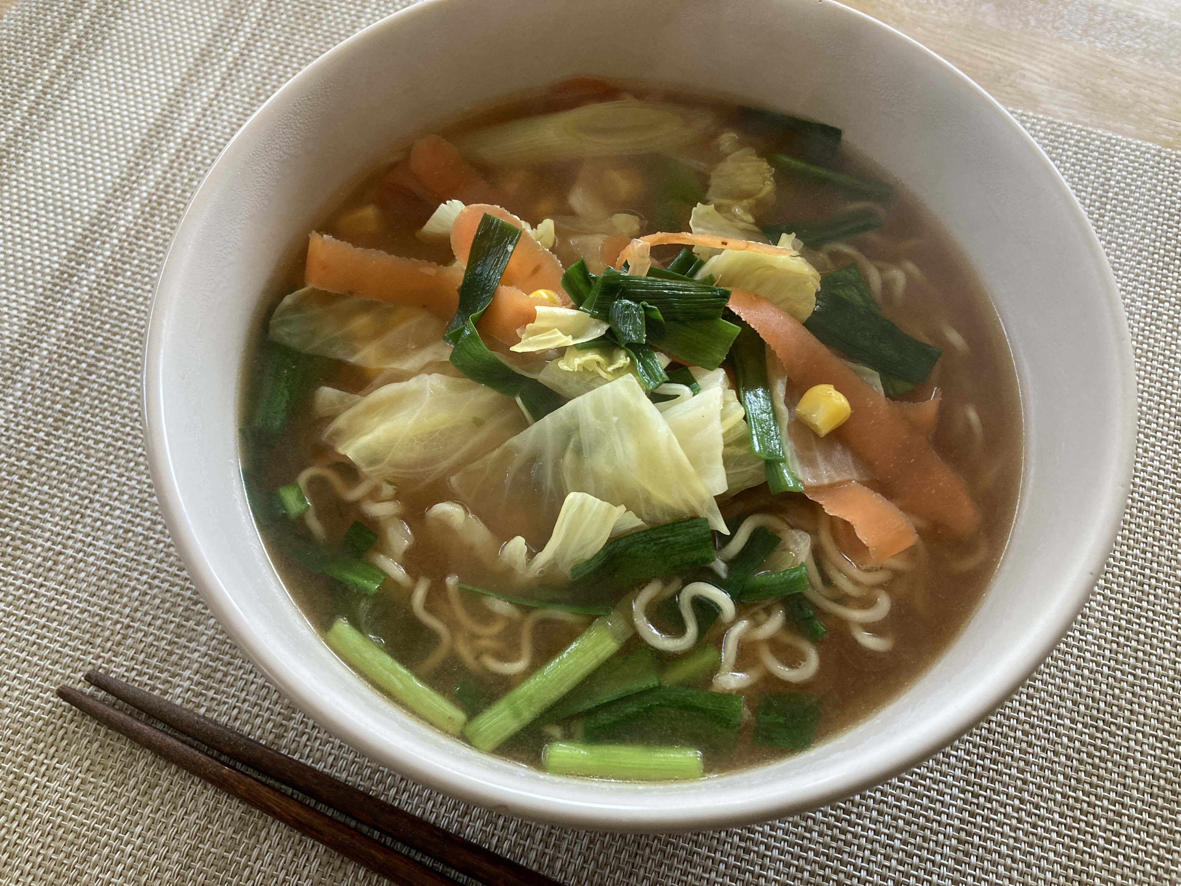 私はたっぷり野菜入りの味噌ラーメン。