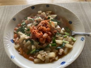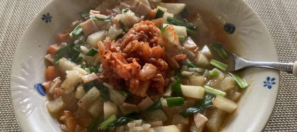 2026年4月1日blogyoko 大根の消費 お昼は中華粥。 在庫している大根の水分が抜け気味に なってきたので、大根の消費です。 残り3本、おでん、豚汁、タラコと 合わせて煮るとかして、とにかく 在庫処分で〜す。