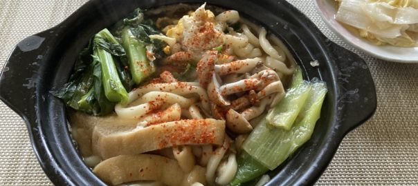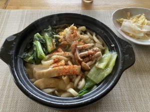 お昼はいつものように鍋焼きうどん。