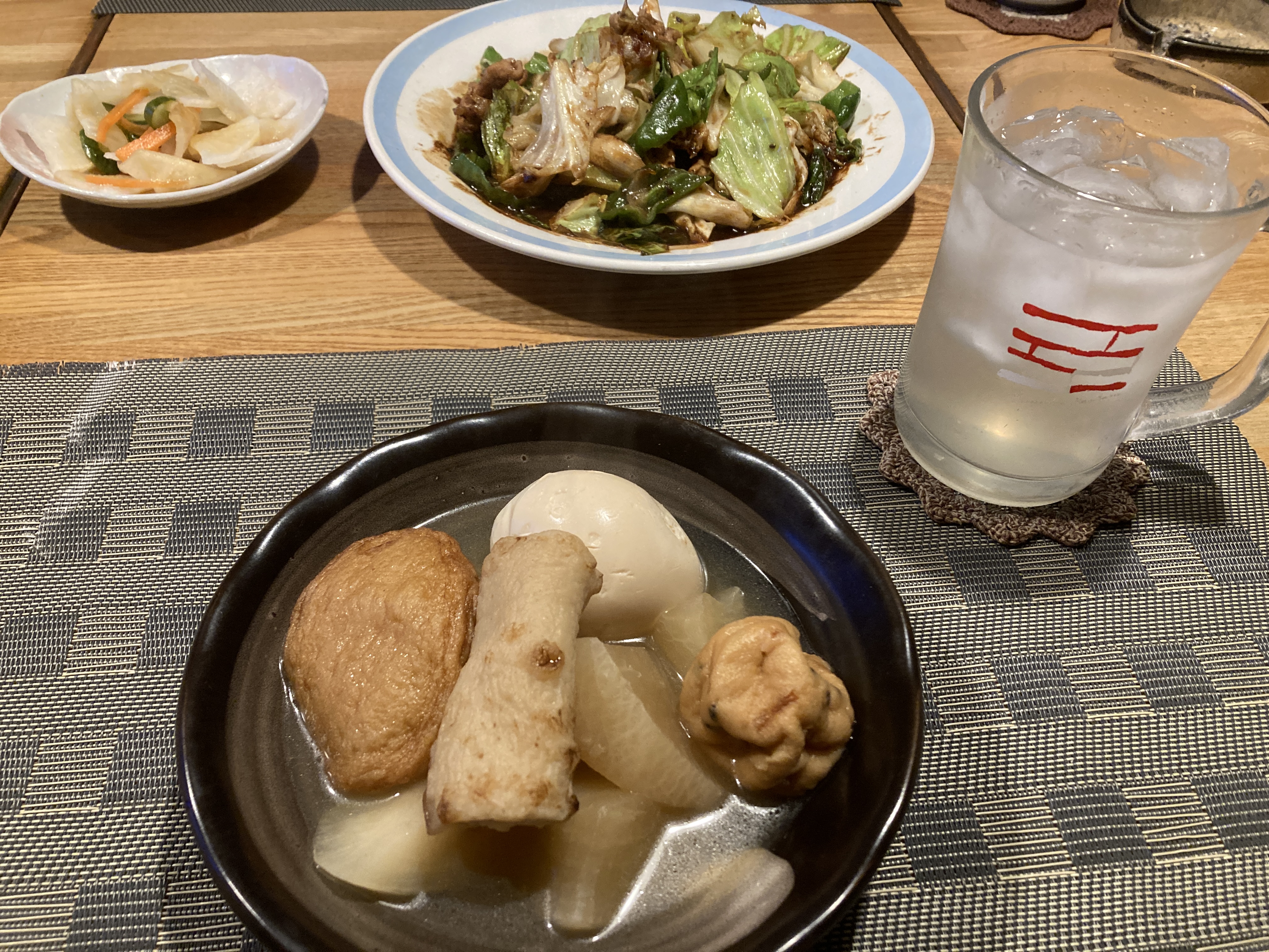 お昼が消化せずで回鍋肉とおでん風の煮物
