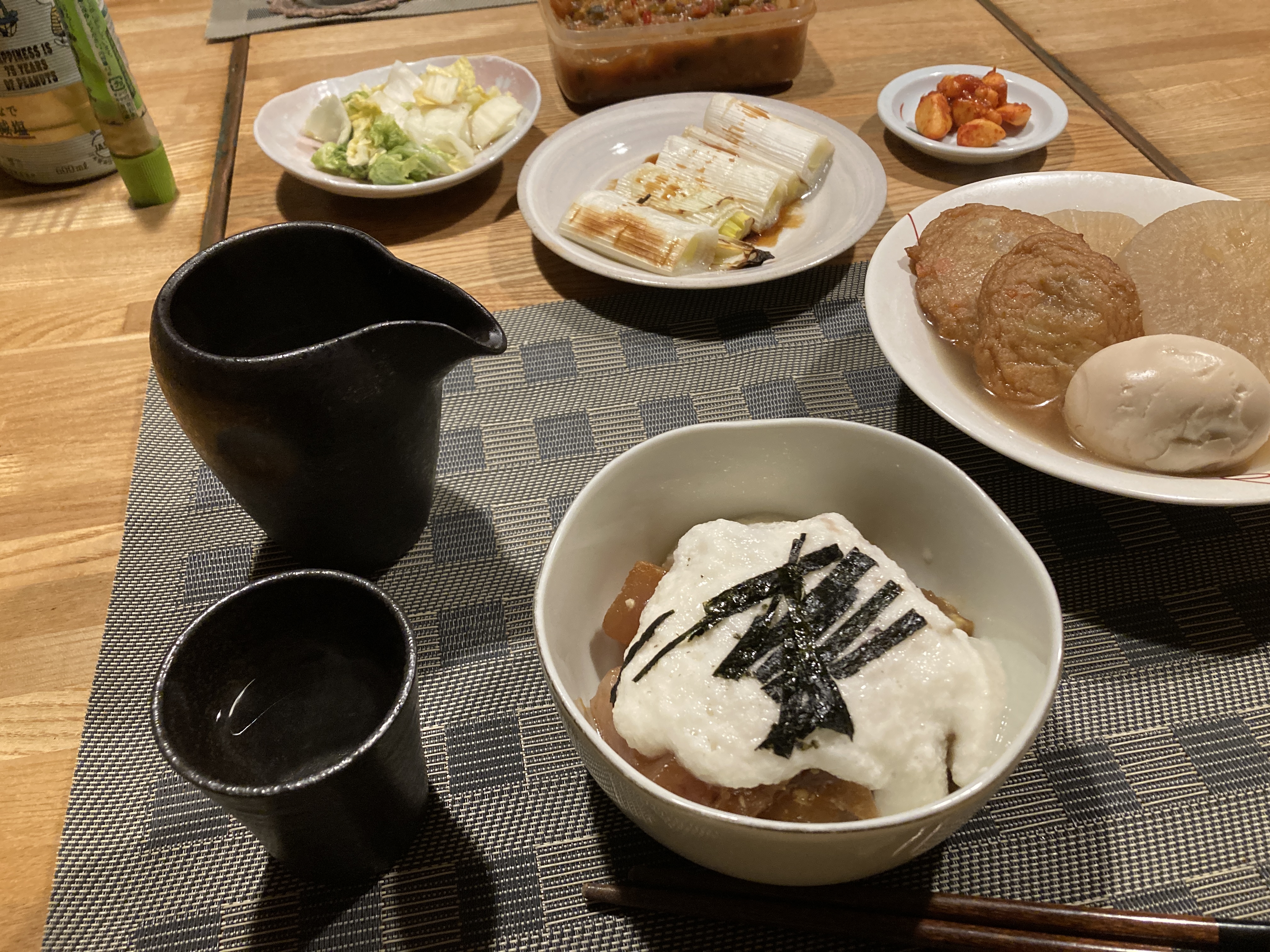 2026年1月30日blogyoko 外に出る気が 夕食はマグロの山かけとおでん&ネギ焼き。 大根と白菜ばかり食べているので、そろそろ 青物を購入しないと。 日中の天気次第で買い物へと思うのですが 冷凍庫にはまだまだ食材があるので、中々 外に出る気がないで〜す。