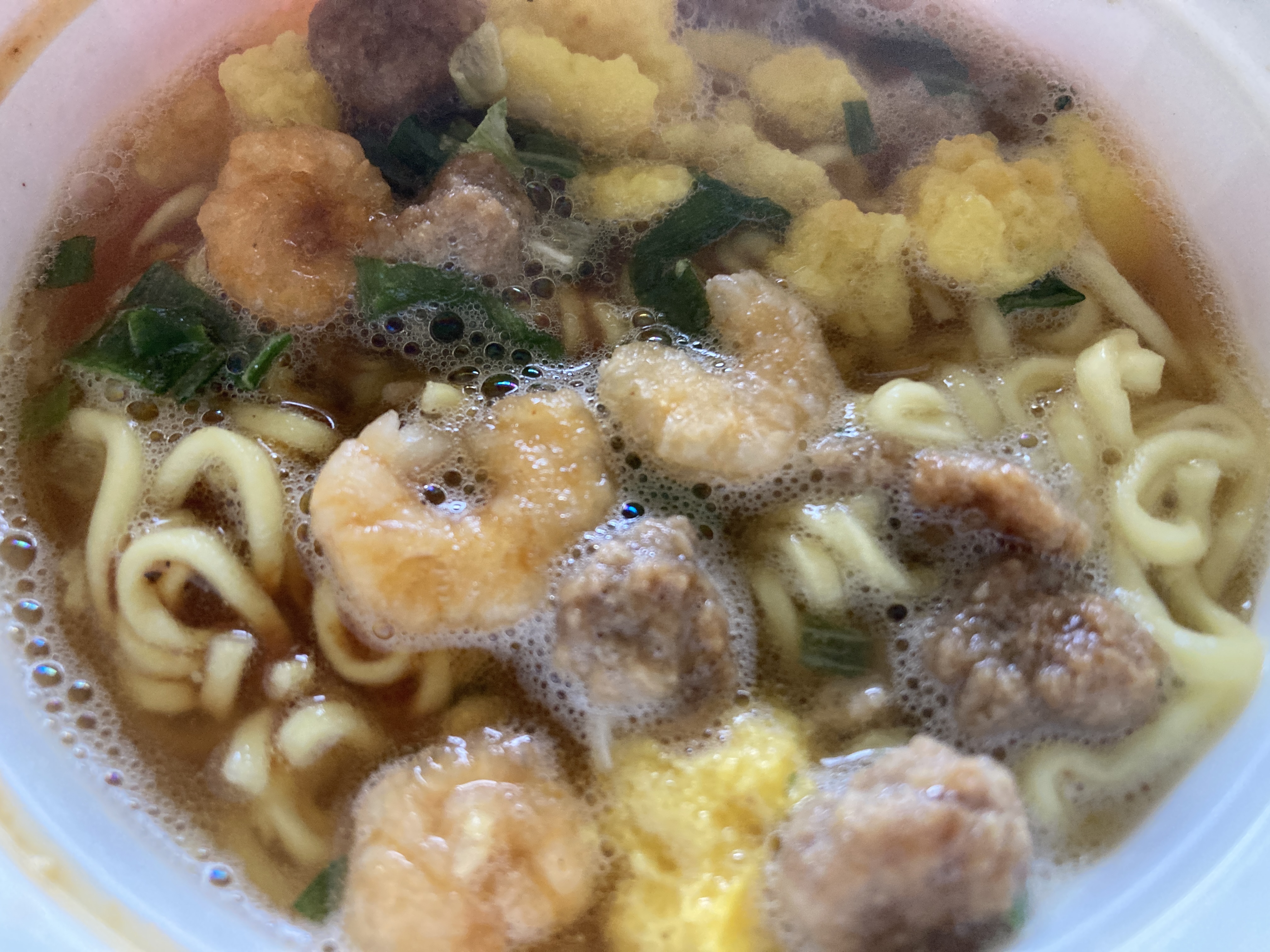 2026年1月28日blogyoko カップ麺で 図書館から戻ったのが1時半過ぎ。 とにかくお腹が空いて、すぐに食べられる カップ麺でお昼です。 しっかり3分経ったのに謎の肉が硬い! スープも残さず完食で〜す。